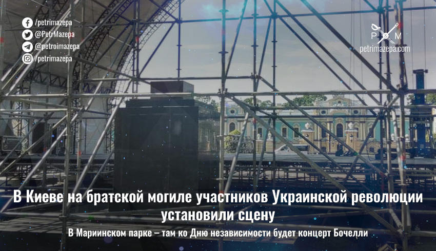 - Утром 17 августа стало известно, что в Киеве на Аллее Героев небесной сотни устанавливают декорации к празднику – прямо посреди мемориала и портретов героев. В частности, там установили уже декорации советского периода, причем фанерная коробка «хрущевки» перекрывает портреты погибших.