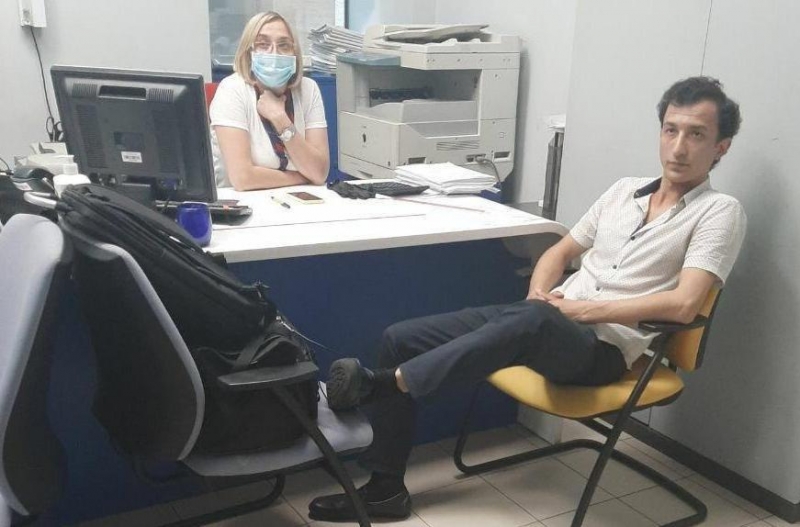 Появилось фото террориста. Он утверждает,что взрывчатка в рюкзаке, а шнур для ее активации привязан к ноге.