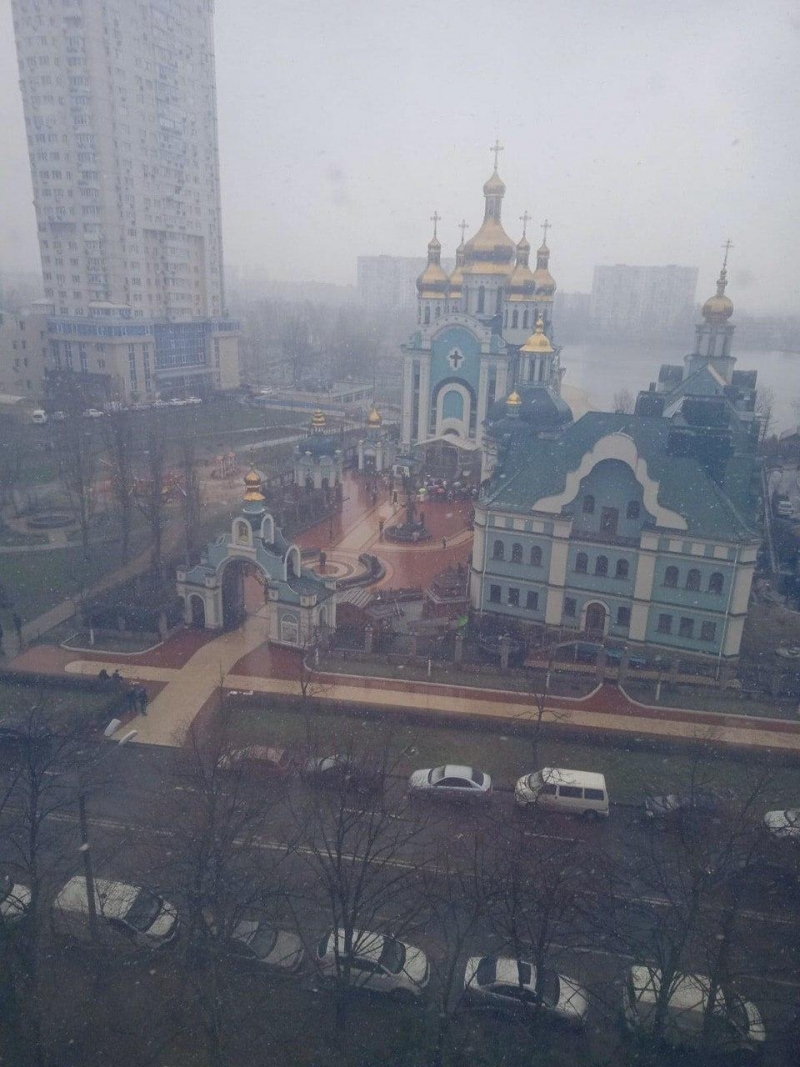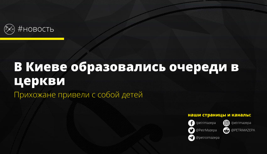 В Киеве из-за карантинных мероприятий образовались очереди в церковь. Люди стараются держать дистанцию, и входят в церковь по очереди из-за чего многие вынуждены ожидать на улице. С собой прихожане привели и детей.