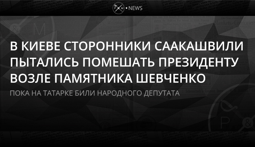 С утра сторонники экс-губернатора Одесской области, а ныне апатрида Михеила Саакашвили, выдворенного из страны в Амстердам, прорвались через заграждения Национальной гвардии, выставленные возле памятника Тарасу Шевченко в парке имени Т.Шевченко, чтобы помешать Президенту возложить цветы поэту в 204 год его рождения.