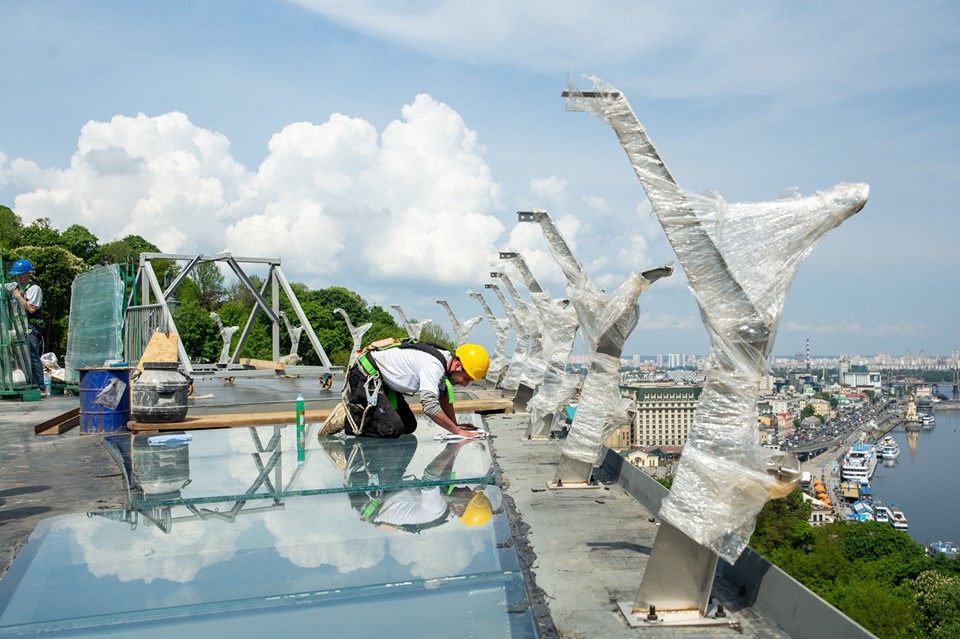В Киеве устанавливают стеклянный пол на пешеходном мосту (фото)