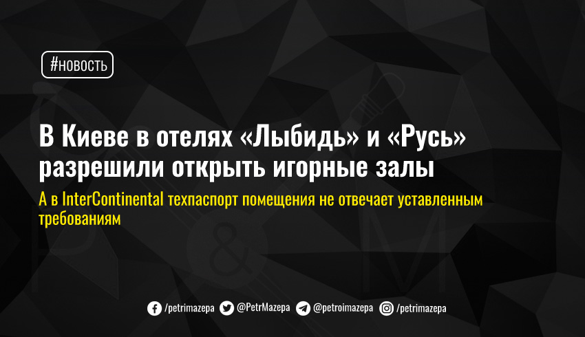 Комиссия по регулированию азартных игр и лотерей (КРАИЛ) выдала разрешения на помещения для организации игровых залов в отелях компаниям «ЛД-Перспектива» и «Хотел Проперти». При этом КРАИЛ отказал компании «Готель Менеджмент» в открытии казино в InterContinental.