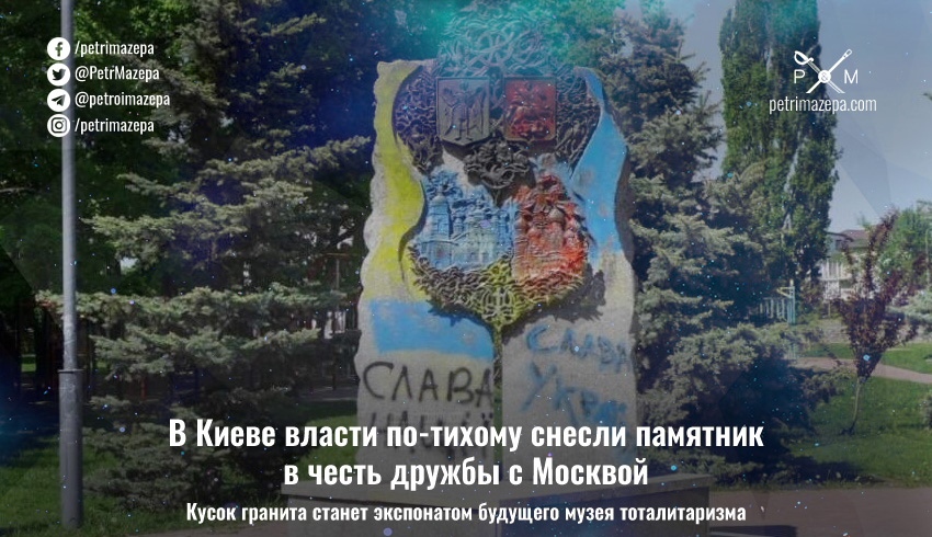 В Киеве власти по-тихому снесли памятник в честь дружбы с Москвой