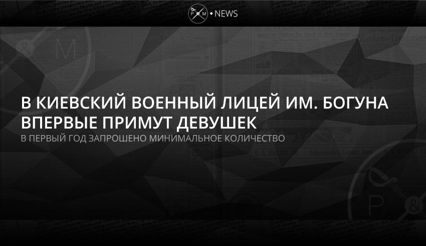 Киевский военный лицей им. Ивана Богуна впервые примет на обучение девушек. Пока запрошено минимальное количество, от 10 до 30 лицеисток, при этом ввиду гендерного равенства в лицее предусмотрены одинаковые требования к абитуриентам независимо от пола, за исключением нормативов по физподготовке.