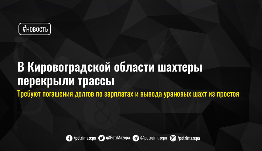 Горняки требуют погасить 83 млн грн зарплатной задолженности по зарплатам и вывести предприятия из режима простоя. В знак протеста работники госпредприятия перекрывают трассы в Кировоградской области.