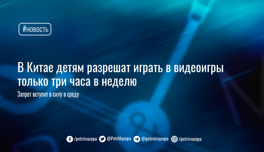 В Китае вводят запрет для несовершеннолетних играть в видеоигры дольше трех часов в неделю. Решение вступит в силу в среду. Ограничение коснется сотен миллионов молодых китайских геймеров. Таким образом в Китае решили бороться с зависимостью от видеоигр, которые официальная пресса страны называла «духовным опиумом».