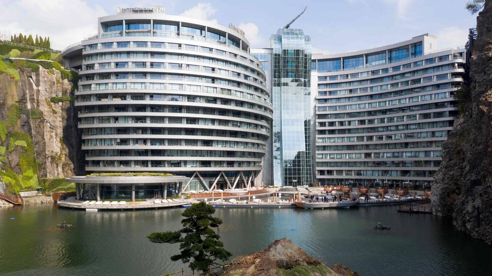 Туристов, решивших посетить Китай, ждёт новый соблазн - элитный Пятизвездочный отель Intercontinental Shanghai Wonderland. Специфика в том, что он построен на месте бывшего карьера на горном хребте Шешань. Его позиционируют, как первый в мире подземный отель.