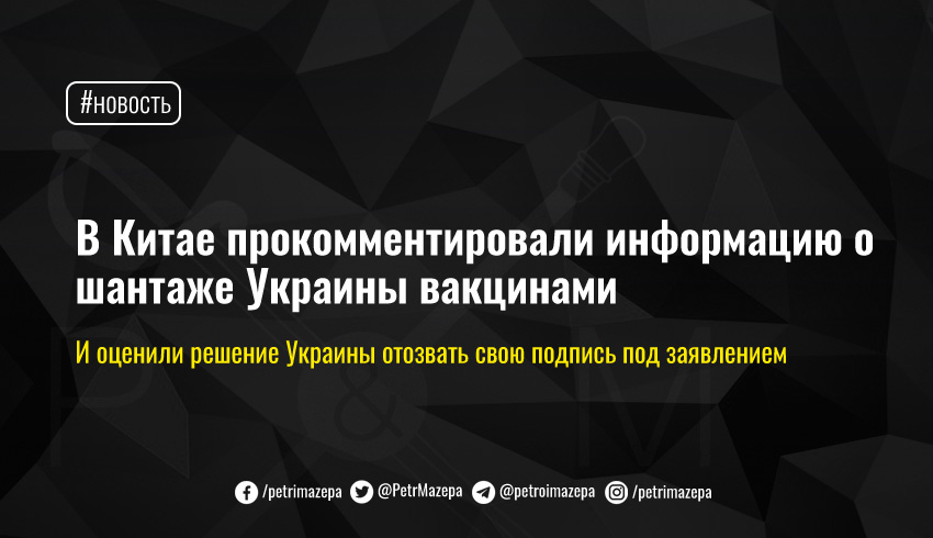 В Китае прокомментировали информацию о шантаже Украины вакцинами