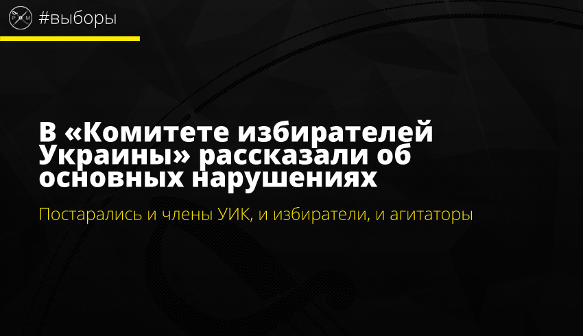Во всеукраинской общественном объединении «Комитет избирателей Украины» (КИУ) к полудню подбили предварительные итоги по нарушениям в первой половине дня на избирательных участках. Ключевыми проблемами названы: незаконная агитация в день выборов, нарушения членов УИК, фотографирование заполненных бюллетеней и силовые провокации.