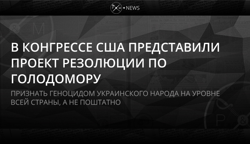Как сообщает посольство Украины в США, проект представлен в Палате представителей Конгресса США. В нем Голодомор 1932-1933 годов признается геноцидом украинского народа, спланированным сталинским тоталитарным режимом. Проект внесла группа конгрессменов от Демократической и Республиканской партий во главе с сопредседателями группы дружбы с Украиной в Палате представителей Сандером Левиным, Марси Каптур, Брайаном Фитцпатриком и Энди Харрисом, говорится в сообщении посольства на странице в Facebook.