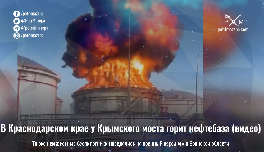 Ночью 3 мая в районе Тамани Краснодарского края России начался пожар на нефтебазе. Огонь охватил более 1200 квадратов. В Брянской области дроны атаковали военный аэродром.