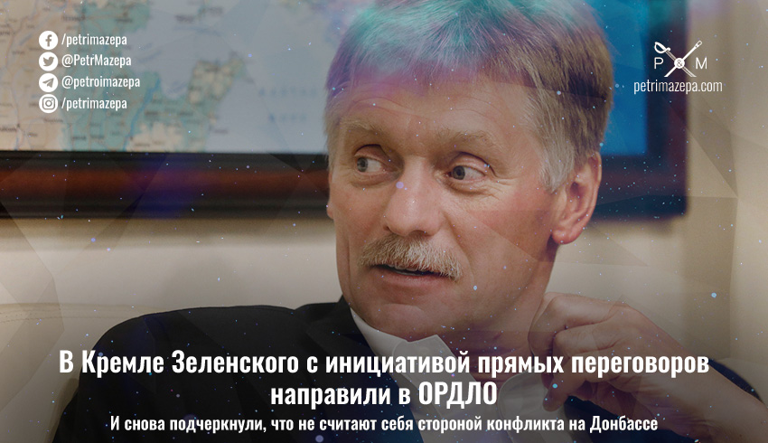 На предложение о прямых переговорах с Россией о войне на Донбассе, которое президент Украины Владимир Зеленский озвучил при выступлении в ВР, ответил пресс-секретарь российского президента Владимира Путина Дмитрий Песков. В Кремле, как обычно, заявили – «война на Донбассе внутриукраинская».