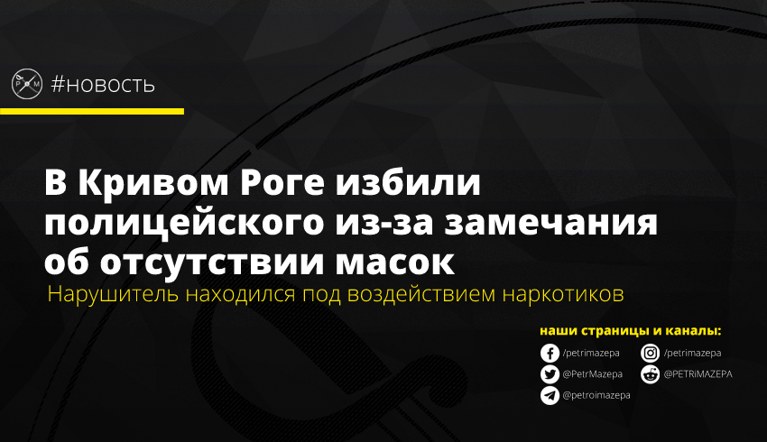 В Кривом Роге нанесли телесные повреждения патрульному, после того как тот сделал замечание об отсутствии у нарушителя карантина маски.