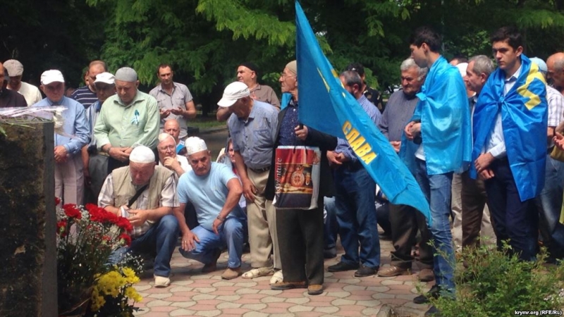 В Симферополе провели молебен в память жертв депортации крымскотатарского народа 1944 года. На акцию собрались около 100 человек с национальными флагами, ленточками, траурными нагрудными значками. Памятные мероприятия пришлось проводить под надзором российской полиции и ОМОНа, передаёт «Крым.Реалии».