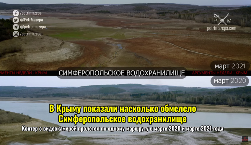 На YouTube-канале «Аргументы недели Крым» выложили видеоролик, в котором сравнили, насколько изменилось Симферопольское водохранилище с марта 2020 по март 2021 года.