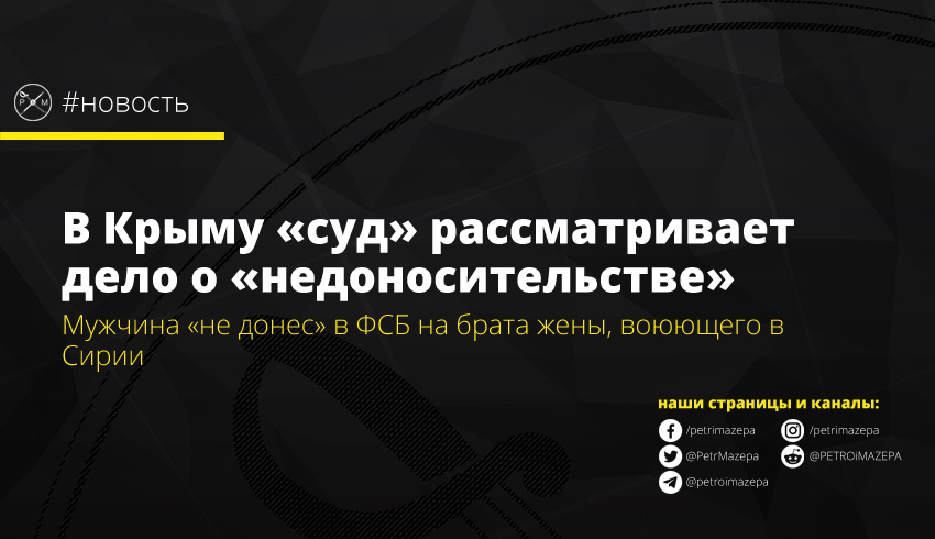 В оккупированном Крыму рассматривают дело по ст. 205.6 Уголовного кодекса страны-агрессора о «недоносительстве». Мужчине, которого подозревают в том, что он «не донес» на брата своей жены, грозит тюремный срок.