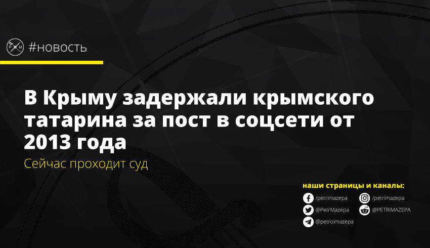 В оккупированном Крыму задержан крымский татарин Сеяр Эмиров. Причина – пост в социальных сетях, опубликованный до аннексии полуострова. В нем, правоохранители страны-агрессора увидели правонарушение статьи 20.29 КоАП – «производство и распространение экстремистских материалов».
