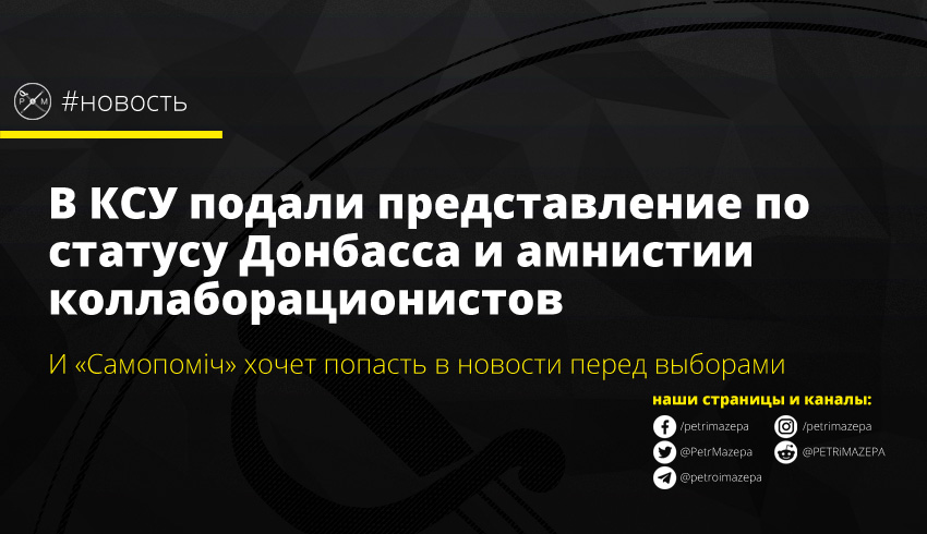 О завершении работы по сбору необходимого количества подписей (53 из 45 минимально необходимых) сообщила на своем сайте партия «Самопоміч». В партии сообщают, что «Согласно этим законам, оккупированной части Донбасса предоставляется широкая автономия с правом на собственные суды, вооруженные формирования и международную политику, а боевикам предоставляется амнистия. Ежегодно действие закона об особом статусе откладывали, но закон до сих пор действующий».