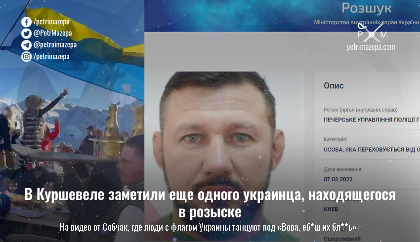 Вчера российская телеведущая Ксения Собчак попыталась набросить на украинцев, обнародовав видео из Куршевеля. На нем какая-то шумная компания с флагом Украины под трек «Вова, еб*ш их бл**ь» получала 6 бутылок шампанского «Кристалл». Собчак задала вопрос, не ищет ли этих мужчин призывного возраста военкомат. Украинский журналист Михаил Ткач узнал на видео как минимум одного мужчину, которого ищет не военкомат, а целое МВД Украины.
