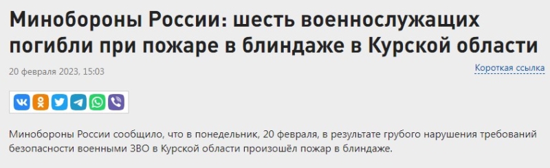 Взрыв произошел сегодня утром, 20 февраля, в одном из районов Курской области, передает издание «Українські новини» со ссылкой на Telegram-канал Baza. «Военнослужащие, расположившиеся в блиндаже, топили печь и неосмотрительно плеснули туда бензин», — значится в сообщении.