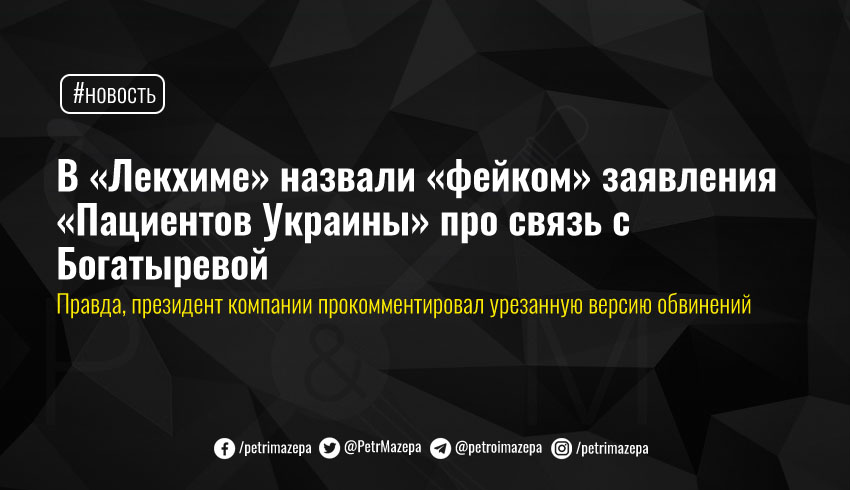 В «Лекхиме» назвали «фейком» заявления «Пациентов Украины» про связь с Богатыревой