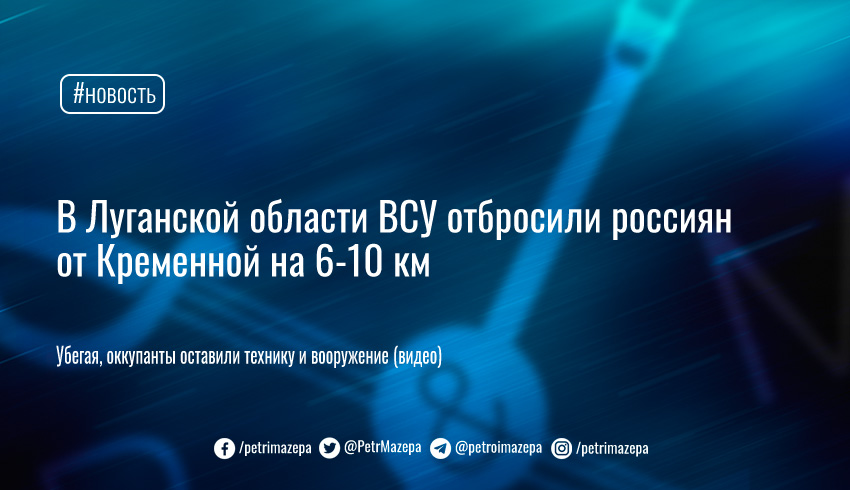 «Горные штурмовики успешно атакуют врага и отбросили захватчиков на 6-10 км от города Кременная. Испуганный и деморализованный враг бросился наутек, оставив на украинской земле свою технику и оружие», — сообщили в Минобороны Украины.