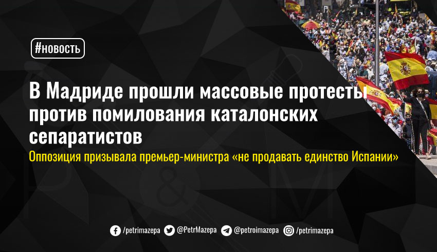 Десятки тысяч людей в столице Испании Мадриде вышли на протесты против запланированного помилования каталонских сепаратистов.