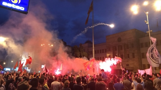Протестующие собрались у здания парламента, скандируя: «Мы не откажемся от названия!». Ещё они выкрикивали имя президента Георге Иванова (отказавшегося подписывать соглашение) и распевали патриотические песни.