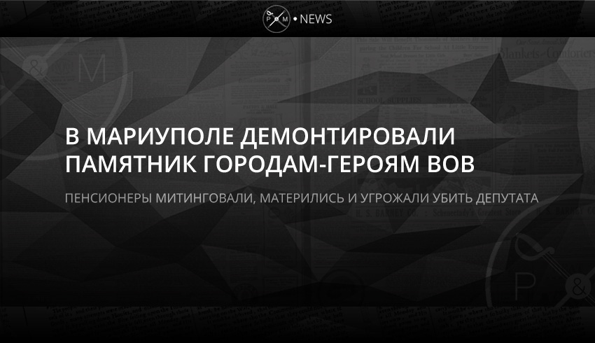 В Мариуполе сотрудники муниципальных служб демонтировали памятник с названиями, флагами и гербами городов-Героев, который открывал собой Аллею городов-Героев Великой Отечественной войны. Местные пенсионеры решили, что тут будут ставить памятник Петлюре, и начали в привычной (для «человека высокой культуры из страны Советов) матерной манере выражать свою позицию.
