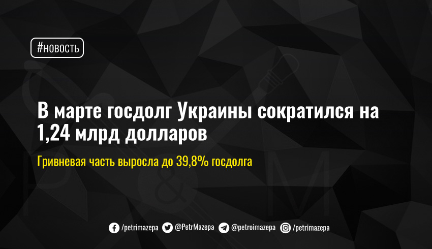 В марте госдолг Украины сократился на 1,24 млрд долларов