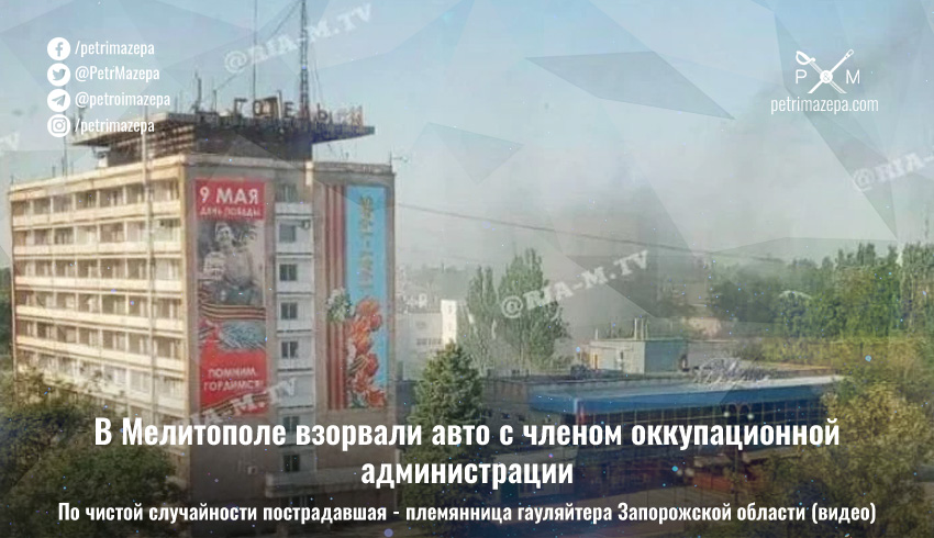Утром в оккупированном Мелитополе прогремел взрыв. По данным местных СМИ, взрывное устройство на дистанционном управлении сработало в районе ТЦ Квартал, неподалеку от ДК Шевченко, в котором находится так называемая военно-гражданская администрация орков и коллаборантов. Пострадала, как минимум, одна из сотрудниц этой администрации — племянница гауляйтера Запорожской области и экс-нардепа Евгения Балицкого.