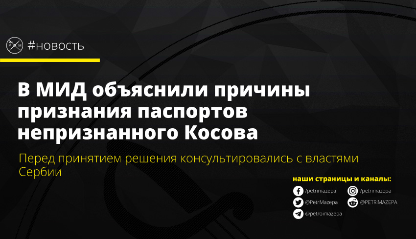 В МИД объяснили причины признания паспортов непризнанного Косова