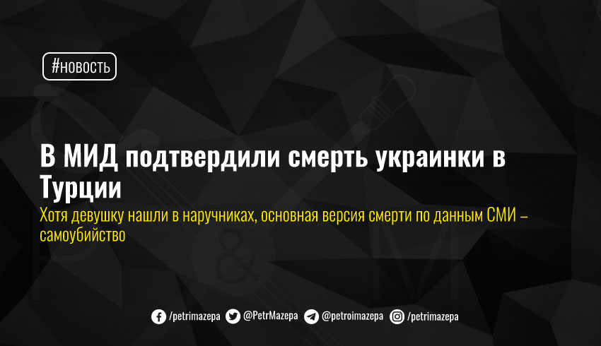 «Дело находится на особом контроле консульства Украины в Анталии. Дипломаты уже установили контакт с турецкими правоохранительными органами, которые проводят расследование, и родными погибшей гражданки. Украинское консульство также начало комплекс мер по подготовке репатриации тела», - сообщил спикер МИД Олег Николенко изданию «ТСН».
