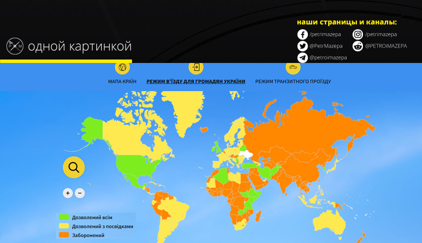 Министр иностранных дел Украины Дмитрий Кулеба представил интерактивную онлайн-карту, которая призвана помочь украинцам путешествовать во время пандемии COVID-19 с минимальными неудобствами. Карта позволяет проверить, в каких странах украинцев ждут какие-либо ограничения при отдыхе или транзитной пересадке.