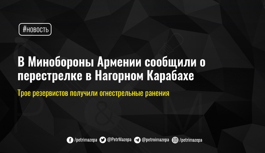 В пресс-службе Министерства обороны Армении рассказали, что инцидент случился в районе Гадрута. По данным ведомства, в результате перестрелки трое резервистов получили огнестрельные ранения различной степени тяжести. Угрозы их жизни нет.