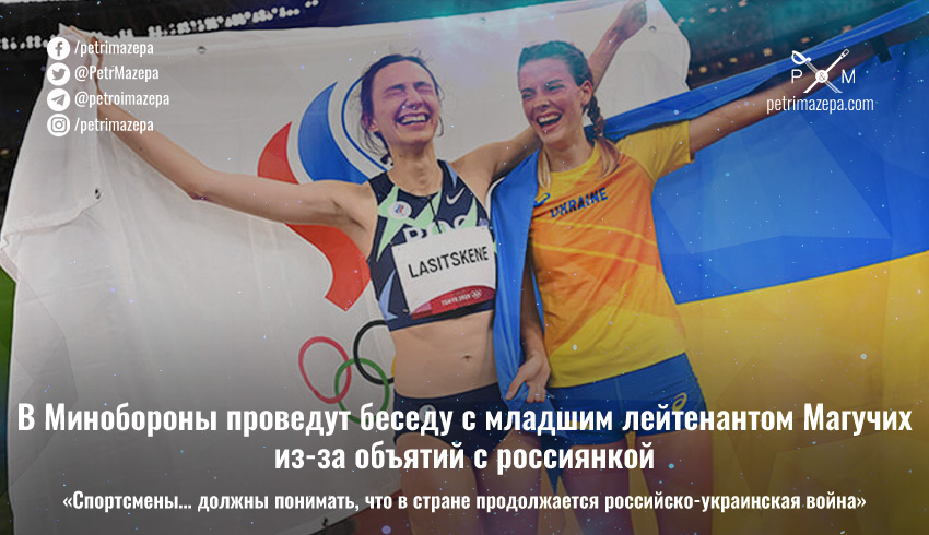 В Министерстве обороны Украины услышали возмущение, возникшее в информационном поле в ответ на объятия призерки Олимпийских игр в Токио и младшего лейтенанта ВСУ Ярославы Магучих с спортсменкой из РФ Марией Ласицкене, которая к тому же была доверенным лицом Владимира Путина. Обещают, что по возвращению Магучих в Украину с ней будет проведена беседа.