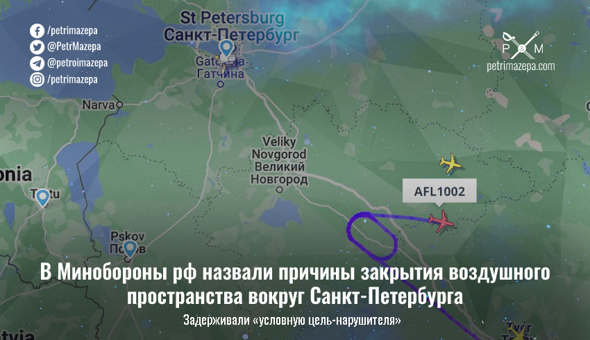 В Минобороны рф объяснили причины закрытия воздушного пространства вокруг Санкт-Петербурга сегодня утром. Якобы это было связано с тренировкой сил ПВО.