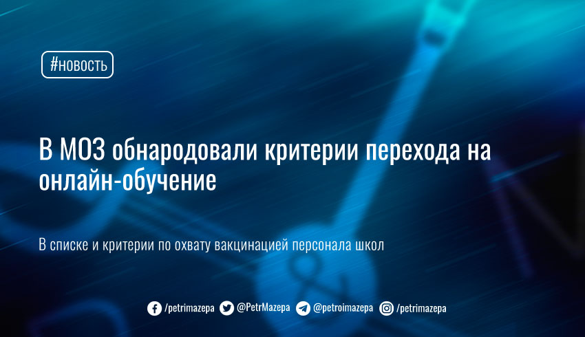 В Министерстве здравоохранения обнародовали критерии перехода на дистанционное обучение для всех учреждений образования, от детских садиков до университетов. В новых правилах введены ограничения на посещение школ даже в «желтой» зоне карантина – учиться очно разрешается только в тех учреждениях, где вакцинировано более 80% персонала.