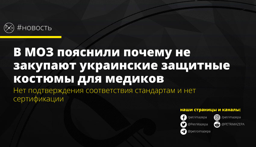 В МОЗ пояснили почему не закупают украинские защитные костюмы для медиков