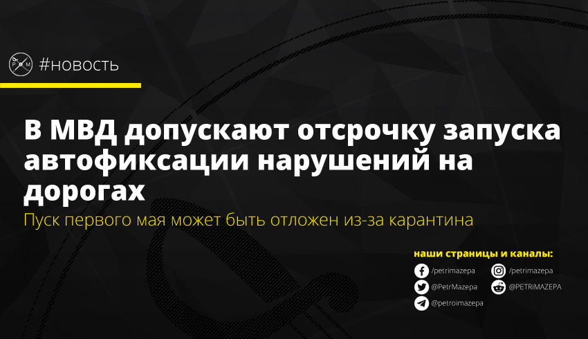 Спикер Министерства внутренних дел Артем Шевченко рассказал, что запуск системы, которая будет автоматически фиксировать нарушения и рассылать штрафы, планируется на 1 мая. «Автофотовидеофиксацию нарушений ПДД и рассылку сообщений об этом пока никто не отменял. Они должны заработать с 1 мая. Хотя возможно и отсрочка в связи с карантином», - значится в сообщении.