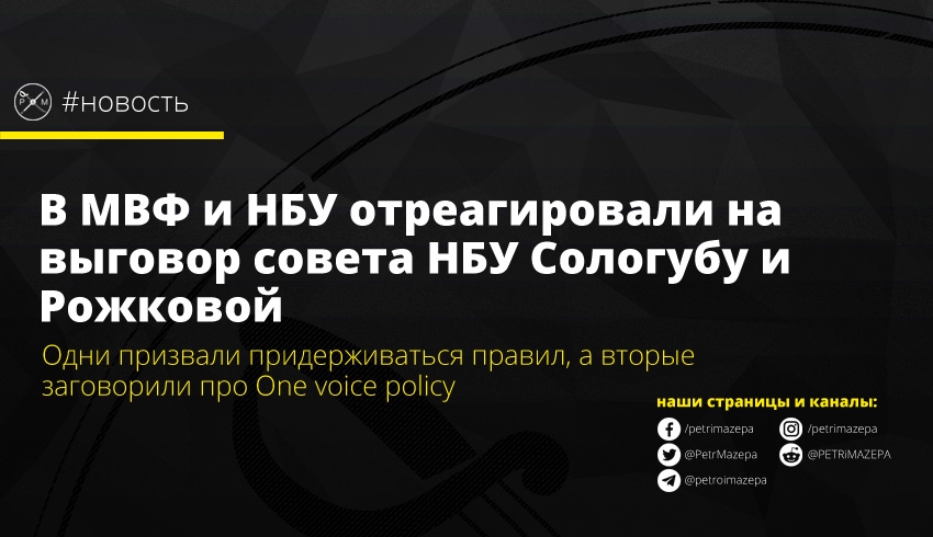 В Международном валютном фонде (МВФ) и Национальном банке Украины (НБУ) отреагировали на решение Совета НБУ объявить выговор и недоверие первым заместителям главы НБУ Екатерине Рожковой и Дмитрию Сологубу.