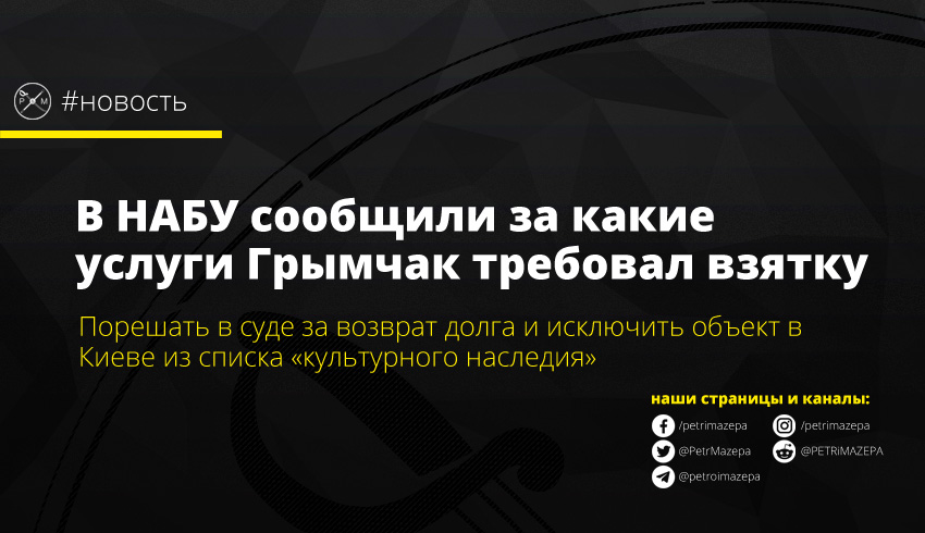 В НАБУ сообщили за какие услуги Грымчак требовал взятку