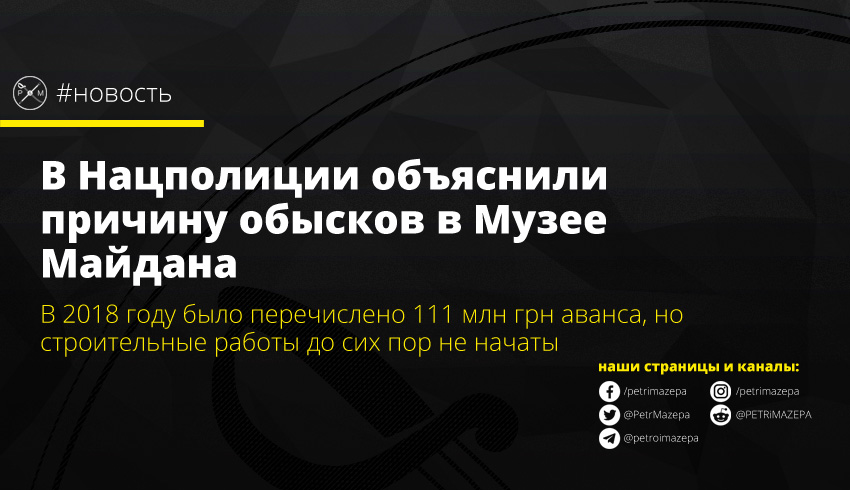 «В ходе досудебного расследования установлено, что в конце 2018 Национальный мемориальный комплекс Героев Небесной Сотни - Музеем Революции Достоинства заключен договор генподряда на выполнение строительных работ с ООО и перечислен на его счет авансовый платеж в размере более 111 млн грн для выполнения строительных работ», - сообщают в полиции.