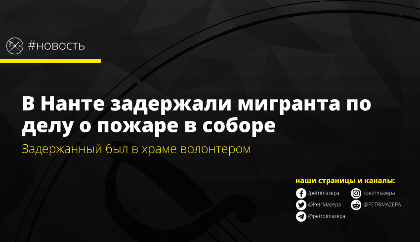 - Вчера в соборе Святых Петра и Павла во французском Нанте произошел пожар. По вчерашним данным французской полиции, пожар начался одновременно в трех точках, что делает версию поджога наиболее вероятной.