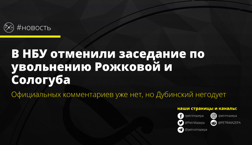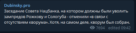 Совет Национального банка Украины (НБУ) не смог (или не захотел, учитывая поднявшийся заранее шум) собраться на заседание, где могли рассмотреть вопрос об освобождении от должности заместителей главы НБУ Екатерины Рожковой и Дмитрия Сологуба.