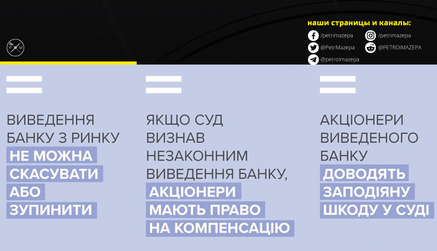 - Позволит сделать неотвратимым процесс вывода банков с рынка. Решение НБУ о выводе банков нельзя будет отменить, а банк вернуть к жизни. Ликвидация банка продолжится при любых условиях, а суды не смогут собой подменять Национальный банк.