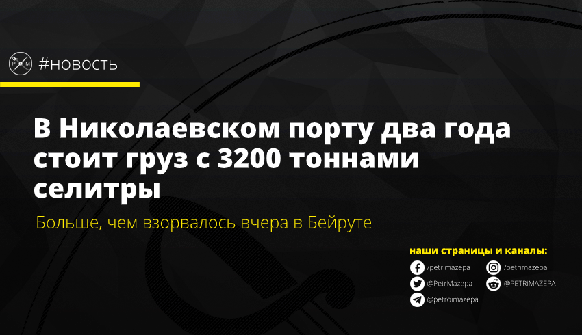 В Николаевском порту почти 2 года на хранении стоит арестованный груз с 3200 тонн просроченной аммиачной селитры. Активисты отмечают, что это больше, чем взорвалось вчера в столице Ливана Бейруте.