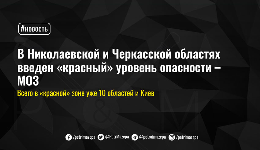 Минздрав обновил карантинное зонирование – «красная» зона расширилась на две области, Николаевскую и Черкасскую. В «желтой» зоне остается только Херсонская область.