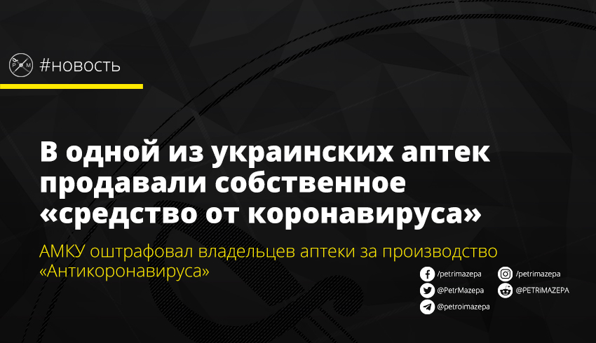 Антимонопольный комитет оштрафовал на 30 тыс грн владельцев аптеки за производство и распространение препарата, который рекламировался как «средство от коронавируса».