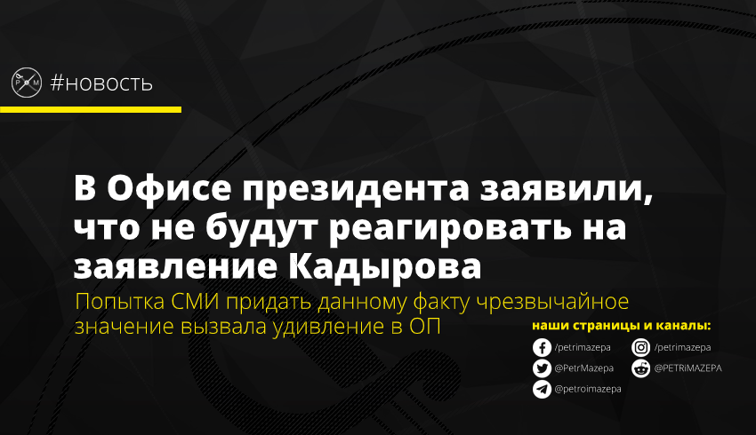 В Офисе президента заявили, что не будут реагировать на заявление Кадырова